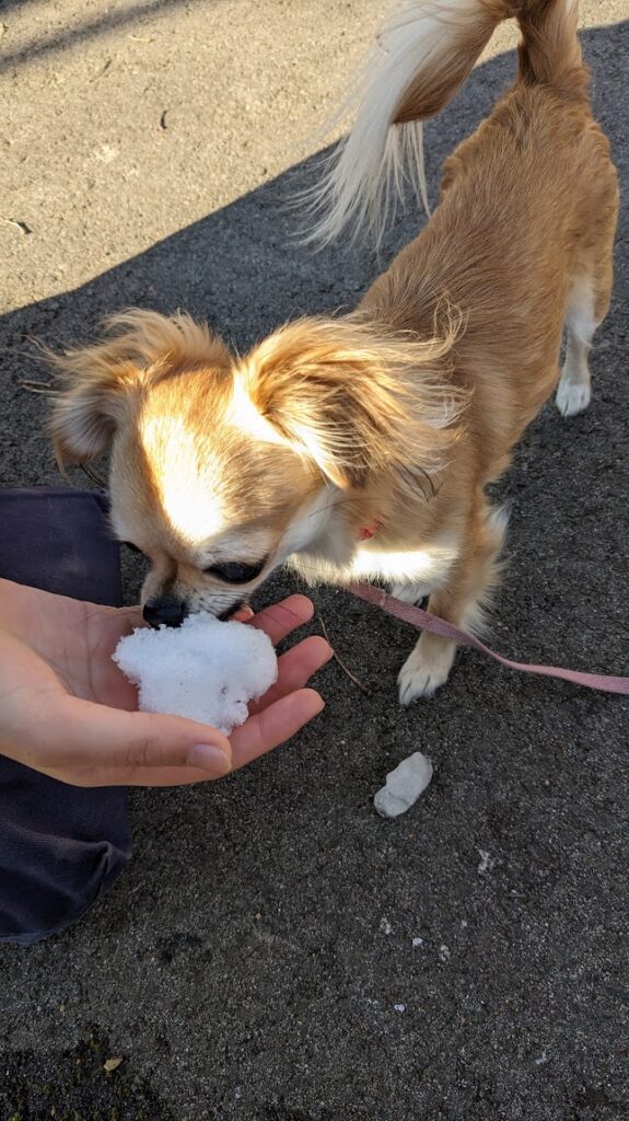 結果的にはこれで正解でした。ももちゃんにも初めての雪を見せてあげられたしね