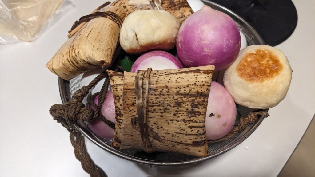 温泉の蒸気で蒸したサツマイモはほくほくで甘く、ネギも香りが立って最高。